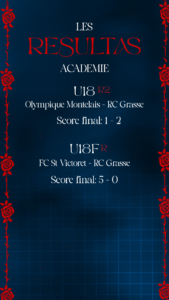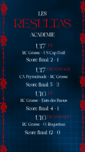 par RC Grasse 16 septembre 2025 home, Jeunes, Non classifié(e), Slider Les résultats complets du week-end des équipes du Racing Club Pays de Grasse 🔴🔵